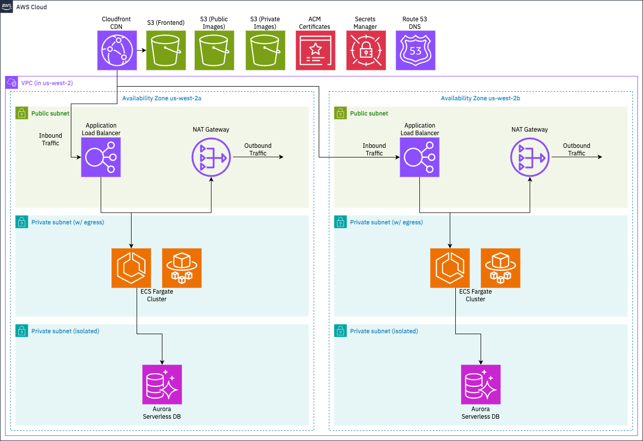 - The ECS cluster and Aurora Postgres databases need to be provisioned within subnets of a Virtual Private Cloud (VPC).